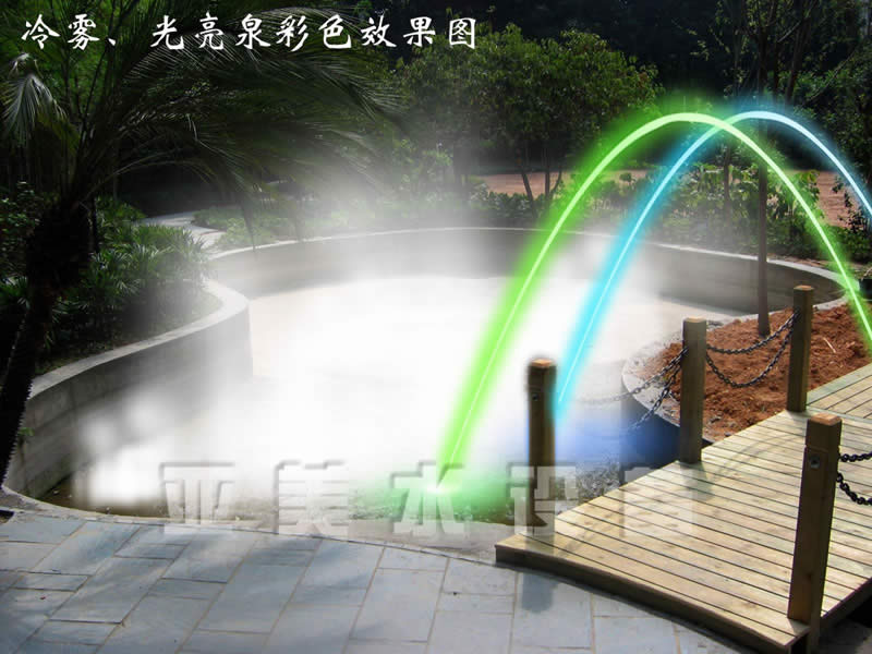 光亮跳泉的安装数量也可以根据环境的实际需要进行增减,它可单根独立成形,水柱从一个水池跳跃到另一个水池,装在人行横道上,行人可从拱门下通过,衣衫不湿,感觉奇特;也可通过多组喷头组合成景,在数个水池之间随意穿梭跳跃,形成一个活泼灵动的水段跳跃群,令人目不暇接,创造出一个童话般的境界。